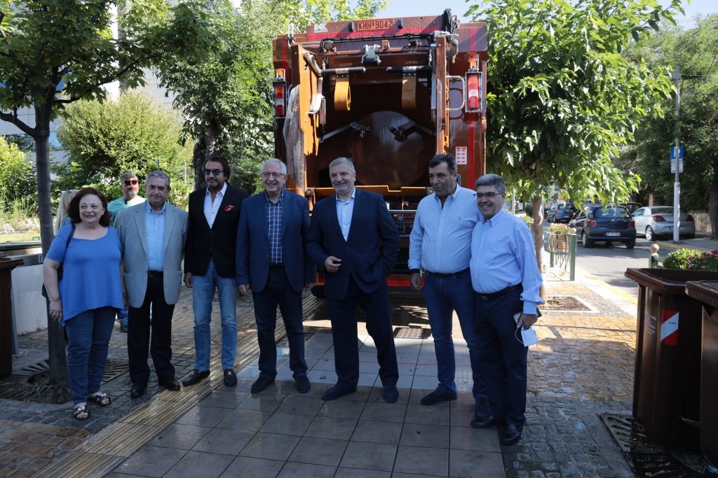 Ο Δήμαρχος Αμαρουσίου κ. Θεόδωρος Αμπατζόγλου παρέλαβε σήμερα παρόντος του Περιφερειάρχη Αττικής κου Γιώργου Πατούλη, ένα απορριμματοφόρο σύγχρονης τεχνολογίας, 40 κάδους εσωτερικής ανακύκλωσης, 40 κάδους συλλογής βιοαποβλήτων και 4 παλέτες εδαφοβελτιωτικού (κομπόστ ), στο πλαίσιο του προγράμματος της Περιφέρειας για την ενίσχυση και διάδοση της ανακύκλωσης στην Αττική και τη βελτίωση της ποιότητας ζωής των κατοίκων της.