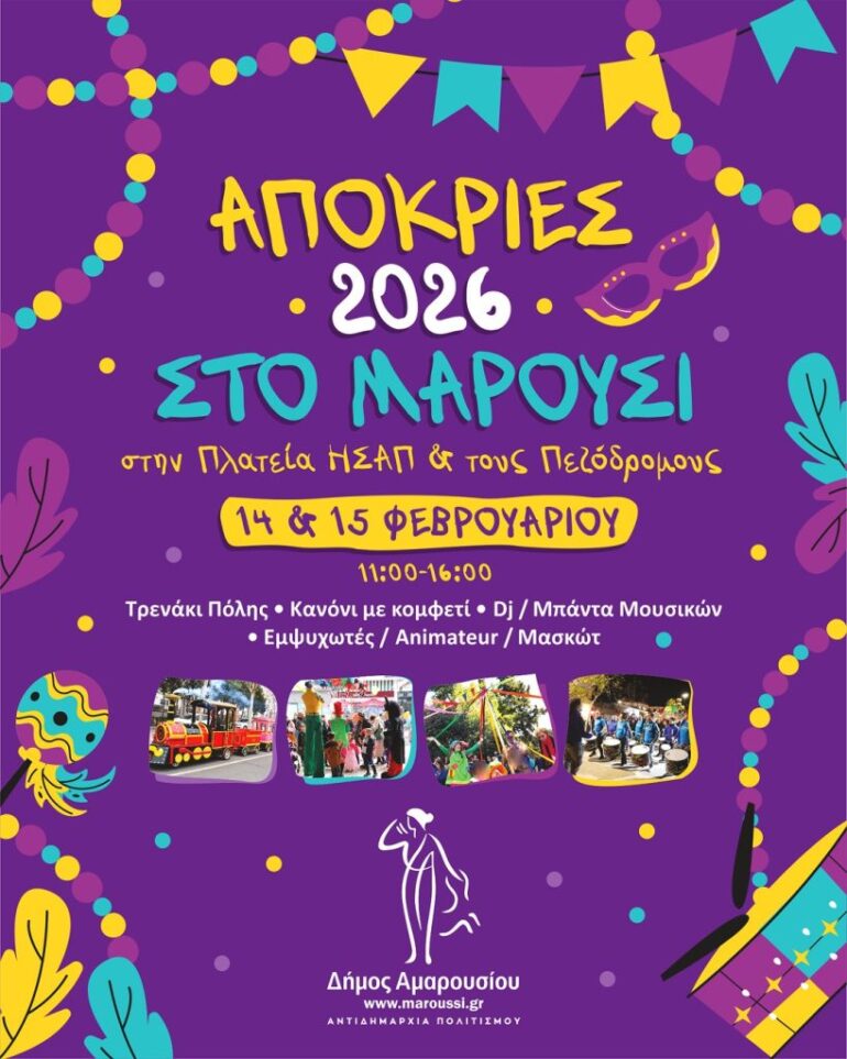 Το Μαρούσι γιορτάζει τις Απόκριες και γεμίζει χαρά, χρώμα και μουσική! Μικροί και μεγάλοι, κάτοικοι και επισκέπτες, θα έχουν την ευκαιρία να…