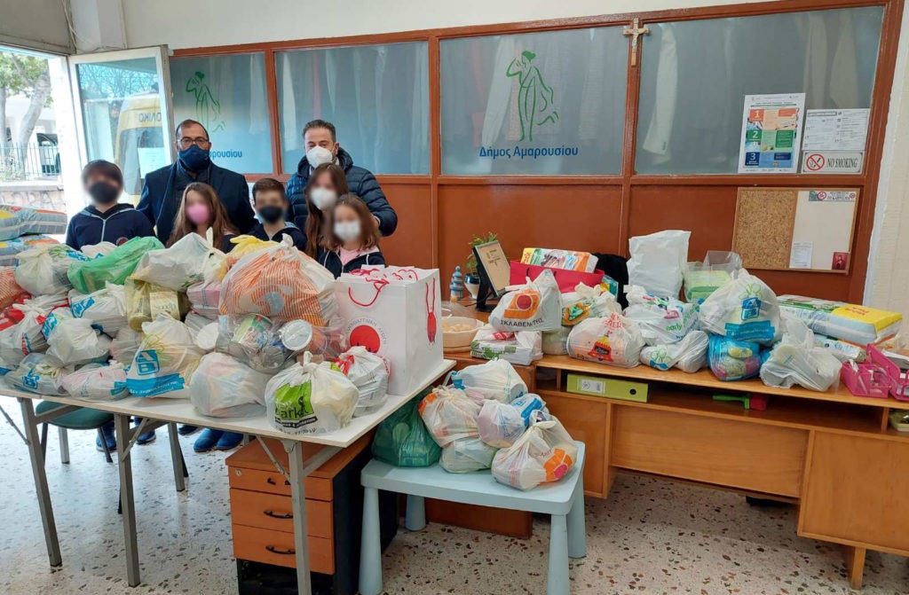 Την Πέμπτη 10 Φεβρουαρίου 2022, μαθητές του Δημοτικού Σχολείου της «Ελληνοαγγλικής Αγωγής» συνοδευόμενοι από τον Διευθυντή του Σχολείου Χριστόδουλο Κακαδιάρη και παρουσία του Προέδρου του Ο.ΚΟΙ.Π.Α.Δ.Α. Πέτρου Κόνιαρη παρέδωσαν για το Κοινωνικό Παντοπωλείο & Φαρμακείο του Δήμου Αμαρουσίου ποσότητες με τρόφιμα, φάρμακα για παιδιά και είδη ανακύκλωσης.